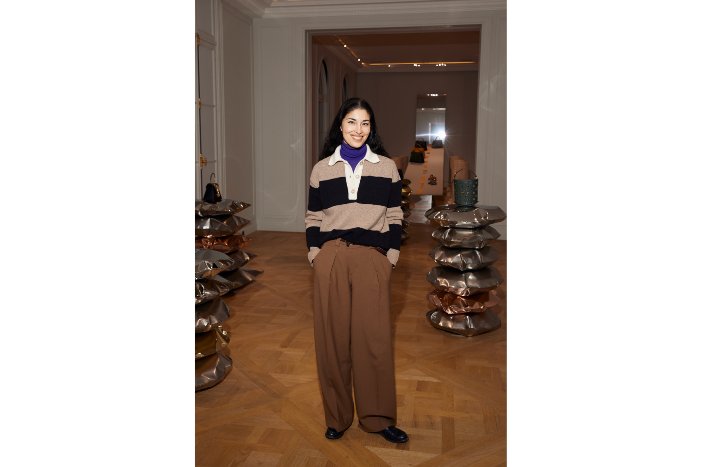 Set in a magnificent 19th Century Parisian hôtel particulier, the seasonal presentation is envisioned as a progression through the House’s design continuum. The pathway connecting the past to the present, evoking the column-lined roads of ancient Rome, winds through each facet of Delvaux’s sensory world.