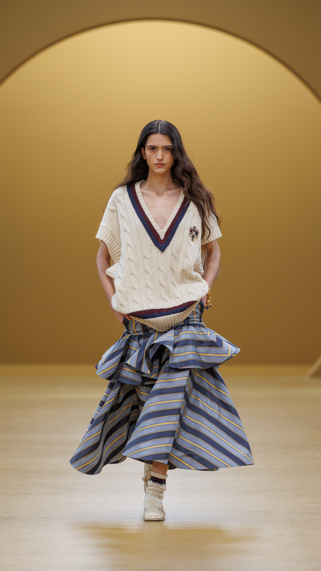 “Fall 2026 is inspired by Australian women during the 1920s, who rewrote the rules at a time of great social change. My grandmother was a lifesaver at Coogee Beach in her late teens, and her stories of that time always captivated me. I looked to other incredible women from that era, from Miles Franklin, the legendary Australian author and a champion of emerging female writers, to the duo Kathleen Howell and Jean Robertson, who were some of the first women to drive across Australia. There’s a photo of them sitting on the back of a car, lighting each other’s cigarettes. I love the mood of it all. I also found references to the first women’s cricket teams in Australia, and the team photos were just brilliant – cheeky, full of life, and joy. Across their diverse fields, these women refused to accept boundaries and formed part of a generational movement. I’ve embraced their spirit of risk-taking, attitude of unfussy practicality, and the cheeky humour that came through their stories and their images.”